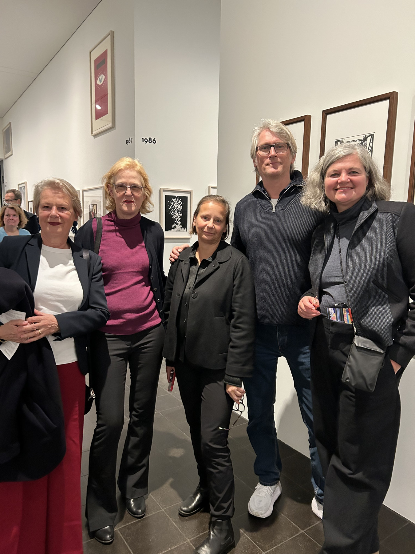 Petra Roettig, 1. Vorsitzende, Sabine Hornig, Künstlerin der Jubiläumswahl, Annett Reckert, Kunsthalle Bremen und Beirat, Thorsten Brinkmann, Künstler, und Stephanie Bunk in den 1980er-Jahren der Ausstellung.