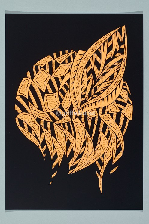 Für die griffelkunst hat Karo Akpokiere eine Reihe von Siebdrucken entwickelt, basierend auf der Fortführung einer Zeichnungsserie, die er 2012 in Kapstadt, Südafrika, begonnen hat. Inspiriert ist die Serie von Hajime Ouchis Buch Japanese Optical and Geometrical Art. Ausgehend von Zeichnungen, die die geschlossene Form von Kreisen und die Illusion von Bewegung zeigen, hat Akpokiere Zeichnungen erstellt, die diese Formen aufnehmen und weiterführen. In seiner Serie Drawings in circles and out of them zeigt der Künstler sechs Graphiken, die durch spontanes Zeichnen aus einer geschlossenen Kreisform entstanden sind. Eine Linie folgt der nächsten, so entwickelt er eine Form, die schließlich durch die Setzung der richtigen Kontraste zum Bild wird. Abstrakte und gegenständliche Motive wechseln einander ab. In Circle 5 treffen wir auf The Cape Town Cyclist, einen Fahrradfahrer, der sich aus ornamentalen Liniengeflechten erhebt. Fokussiert man Circle 3, offenbaren sich ein paar Sneakers, an deren Schnürsenkel eine kleine Figur schaukelt – Swinging on a loose thread. Es gibt viel zu entdecken auf diesen wunderbaren Siebdrucken, die Ausdruck von Akpokieres Spaß an der Zeichnung sind.